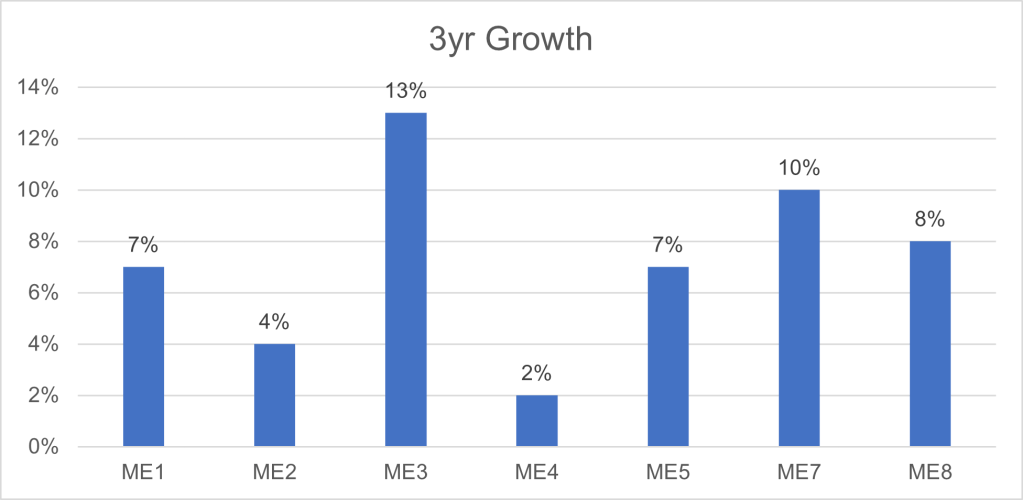 This statistic is very interesting as whilst the Medway Towns have seen house price growth of around 7% over the past three years, this is significantly different if you look at each postcode sector.