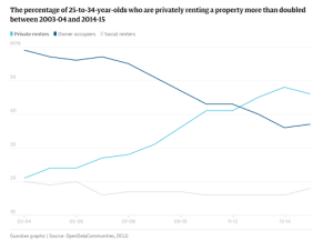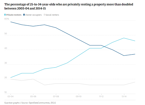 However there remains a supply problem and this means owning and renting properties are still a great investment – especially HMOs. Just take a look at the above chart, via the Guardian, which shows that private renters are going up with owner occupiers going down.